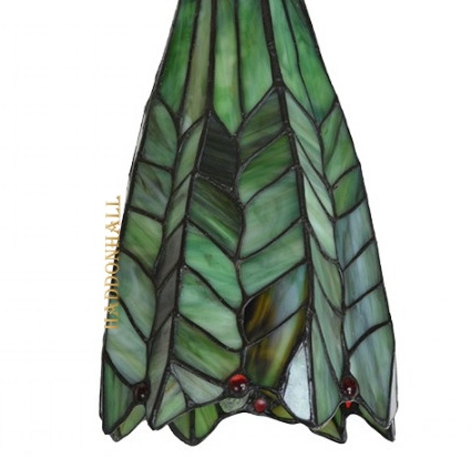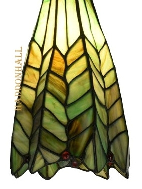 Artikelnummer - Article number: 6337 x3 8130 x3 8147 Overzicht- Hanglamp met 3 Tiffany kappen - Greenleaf motief