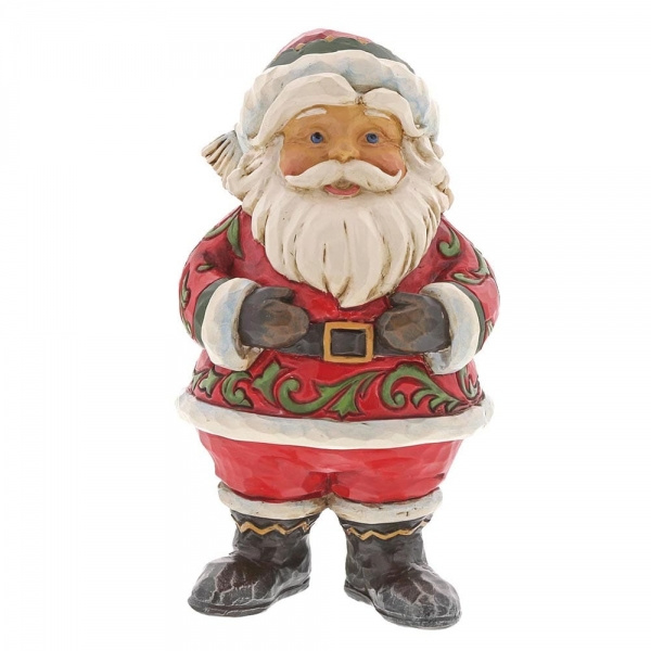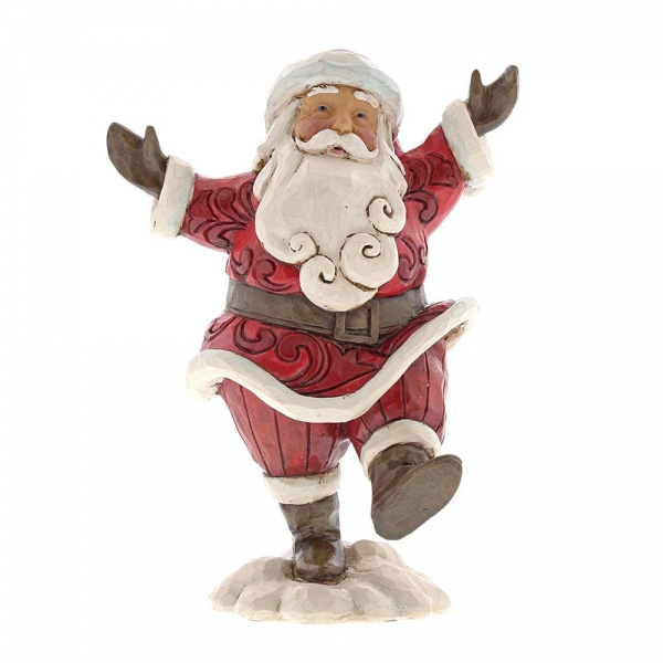 Could Santa be any happier? Old St. Nick has a joyful kick in his step, arms outstretched as he welcomes the holiday season with a cheerful smile. This pint-size stone resin design is carved with rosemaling motifs and hand-painted for a beautiful finish.