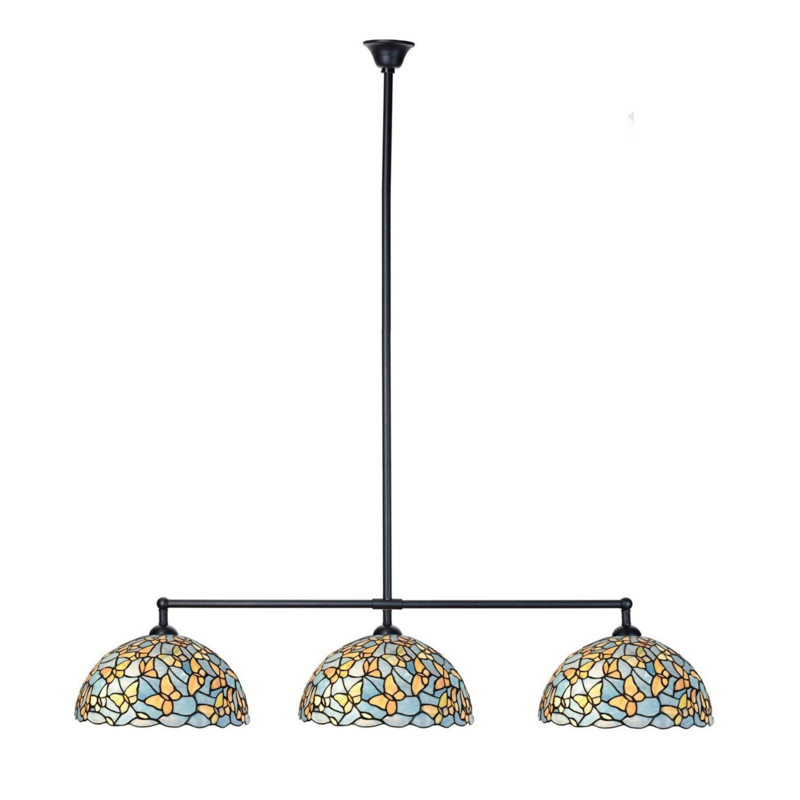 8839 Hanglamp Zwart B90cm met 3 Tiffany kappen Ø35cm Fly Away∙ Hanglamp - T-lamp met 3 Tiffany kappen Fly Away motief
